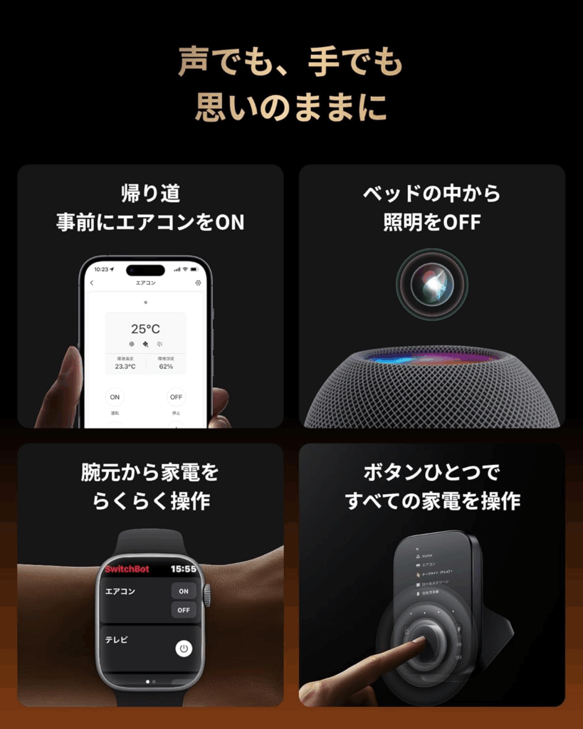 SwitchBotは、既存の家電をそのままに、生活をスマートかつ効率的に変えてくれるツールです。