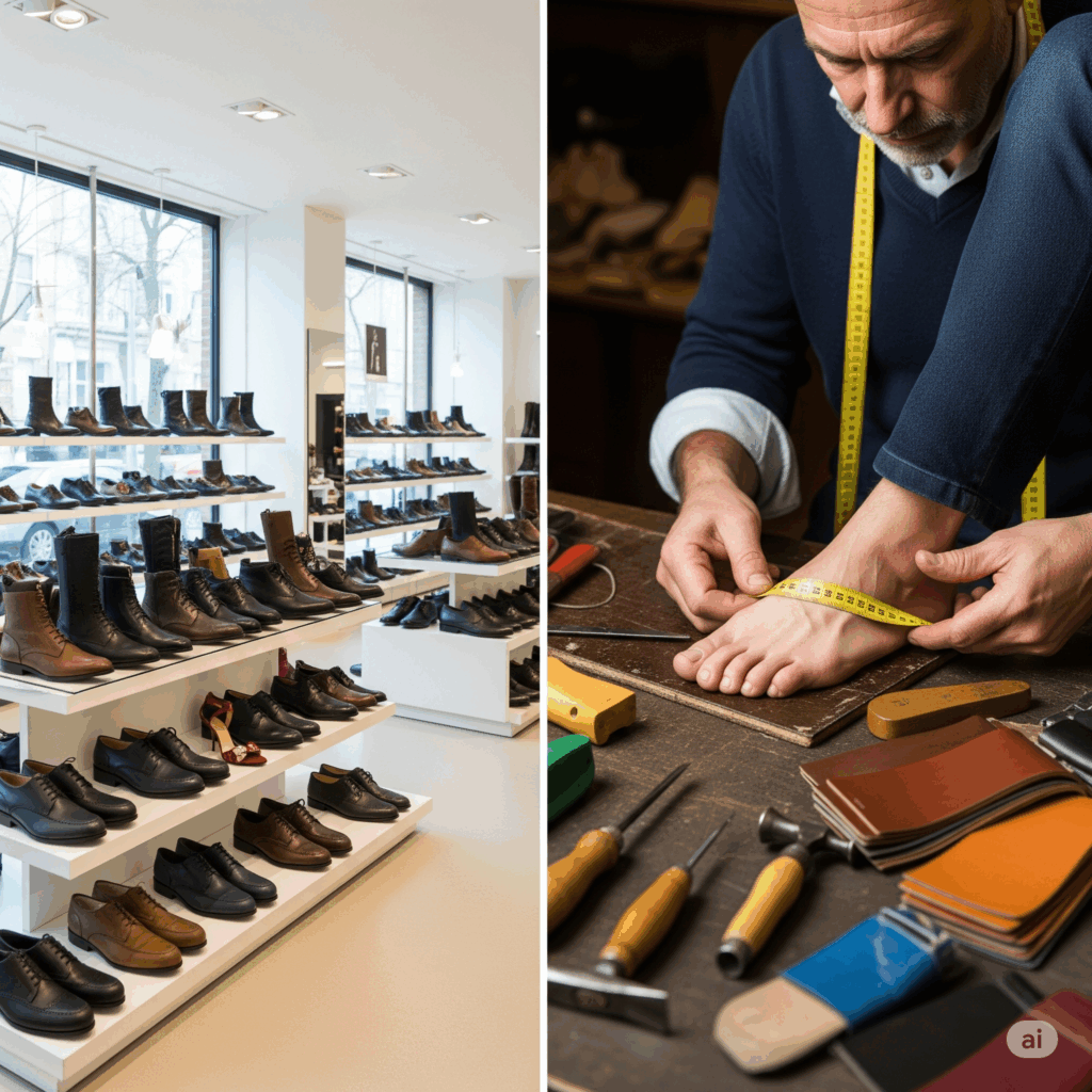 「足の悩みに応える」という点では、整形靴としばしば比較されることがあります。整形靴は、医師の診断と処方に基づいて作られる医療用の靴であり、特定の症状の治療を目的としています。