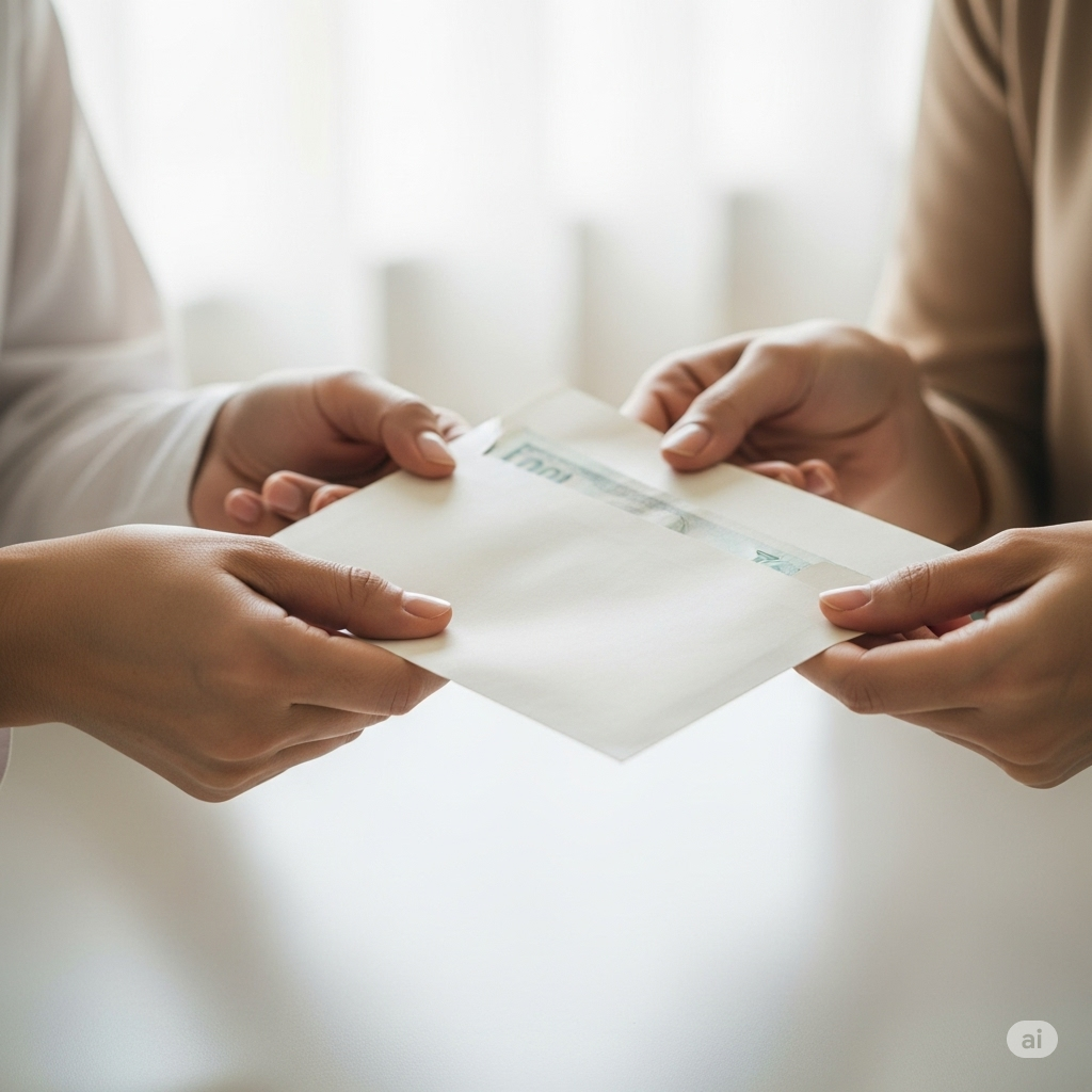 封筒の準備が整ったら、いよいよ渡す段階です。ここでも、ちょっとした気遣いが光ります。
