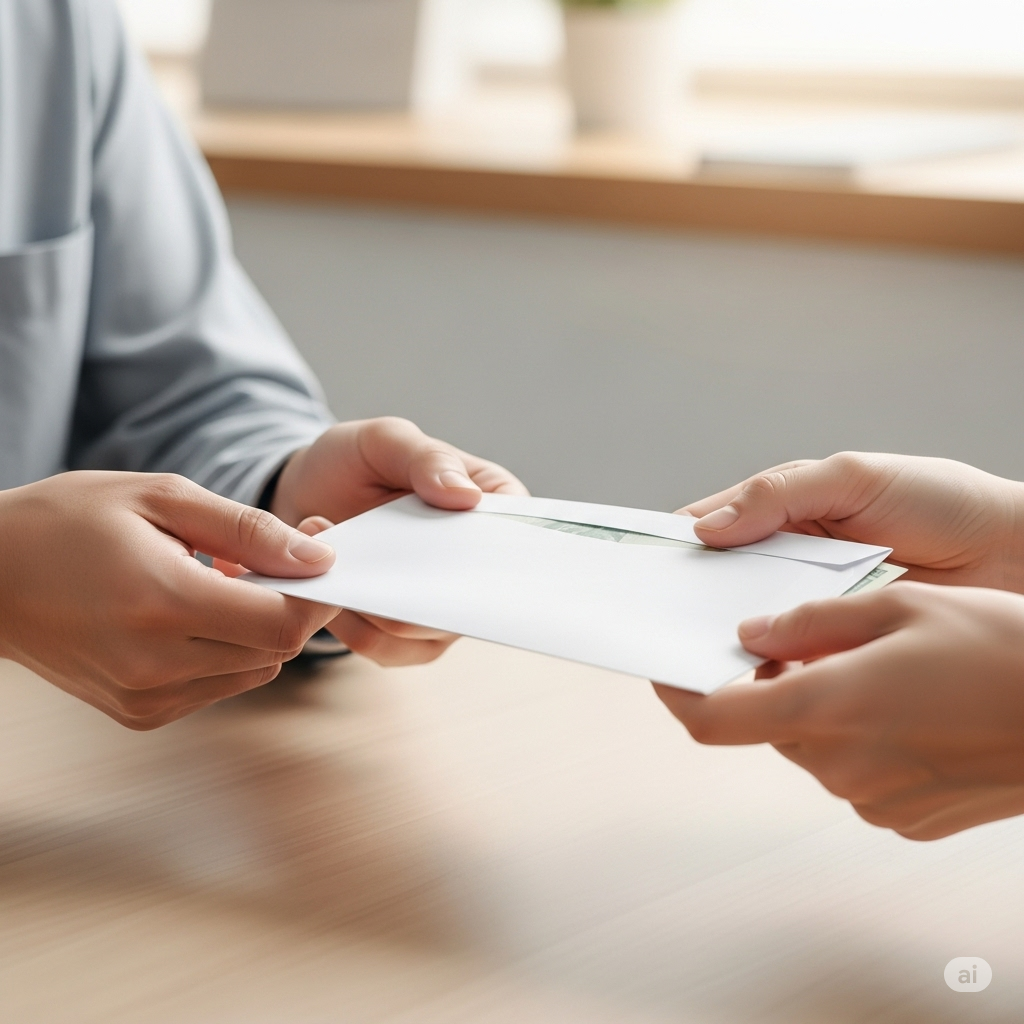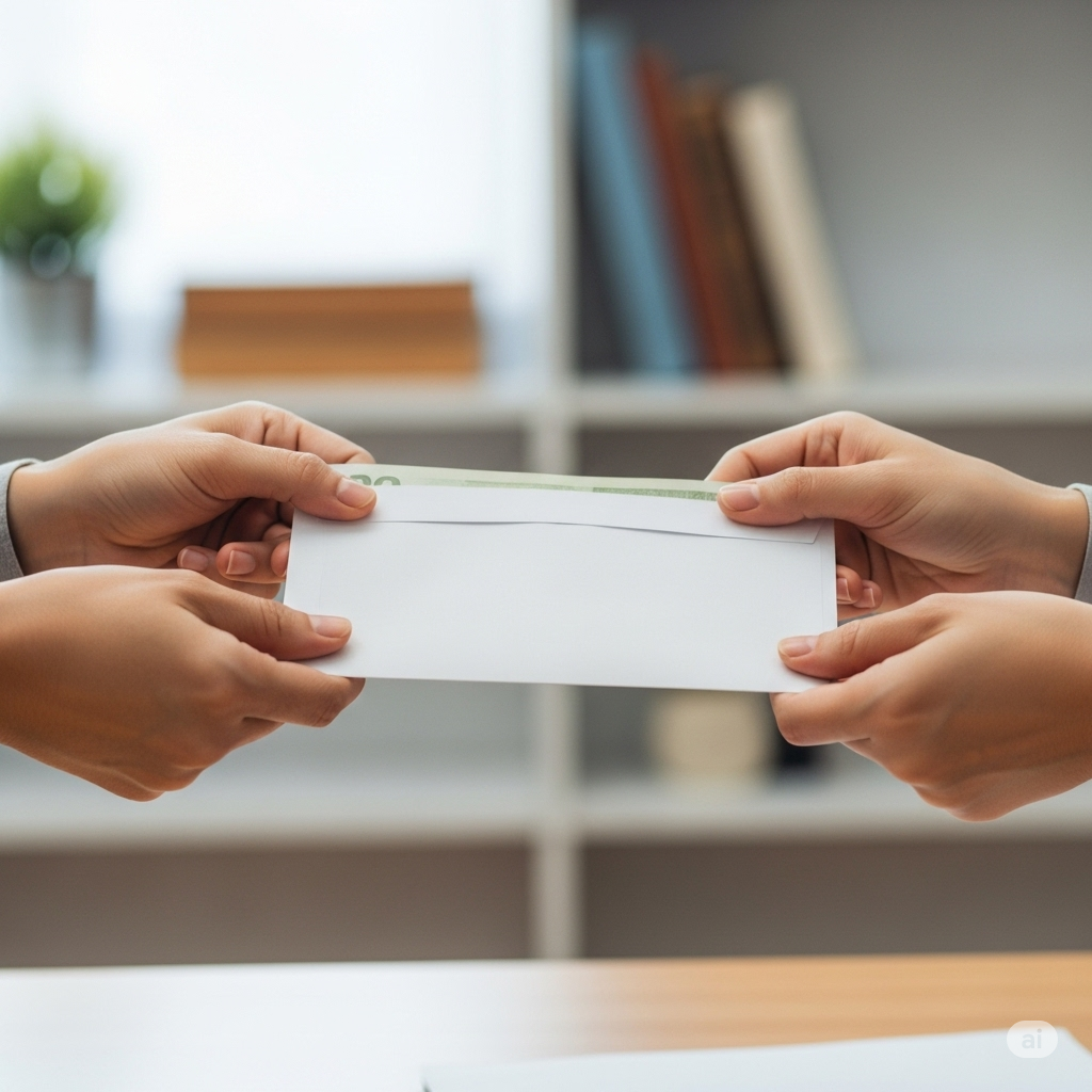 当たり前のことですが、封筒は両手で丁寧に渡しましょう。これは、お金を支払うという行為だけでなく、「いつも教えてくださってありがとうございます」という感謝の気持ちを表現する大切なジェスチャーです。片手でヒラヒラと渡したり、机に置くだけでは、失礼にあたります。