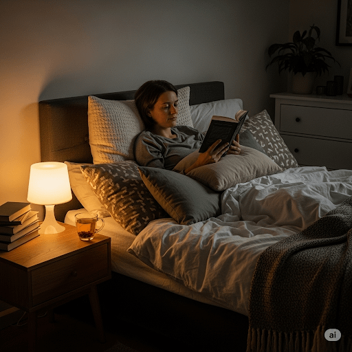 寝る時間が近づいたら、寝室の照明を暖色系の間接照明に変えたり、明るさを落としたりして、脳に「夜が来た」と認識させましょう。ラベンダーやサンダルウッドなど、リラックス効果のあるアロマを焚くのもおすすめです。