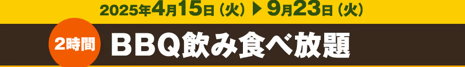 【メニュー・価格】バーベキュー飲み食べ放題(2時間制、30分前L.O.)