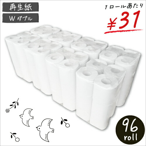 \最安値に挑戦!/【送料無料/トイレットペーパー】☆再生紙トイレット12RW☆ダブル 27.5m×96R(12ロール×8P)